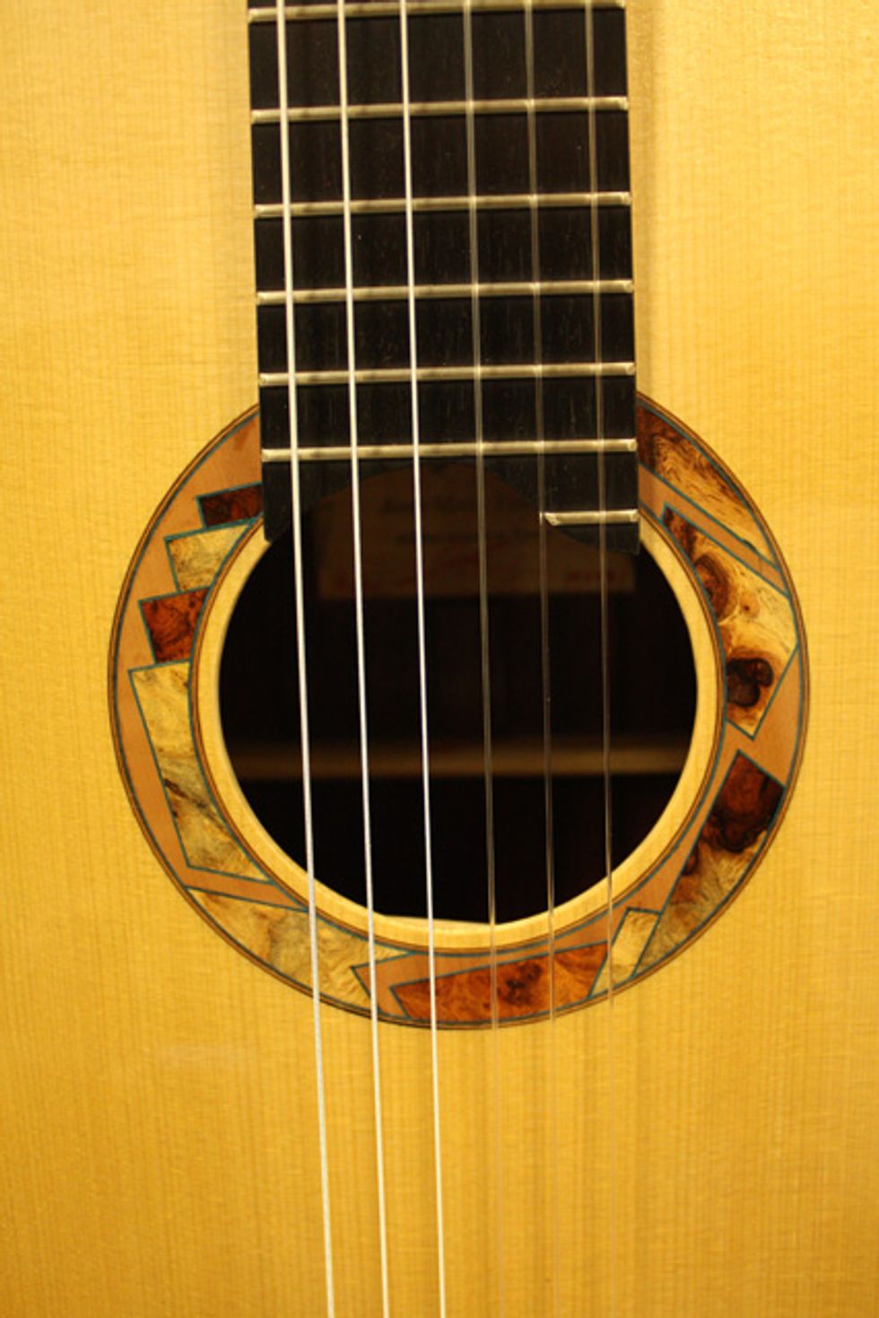Jean-Marie Fouilleul was named the "best craftsman in France" in 1989, only 10 years after building his first guitar. He focuses mainly on enhancing performance guitars and draws inspiration from both ancient and modern instruments. He presented an Arche-type performance model at the show.
