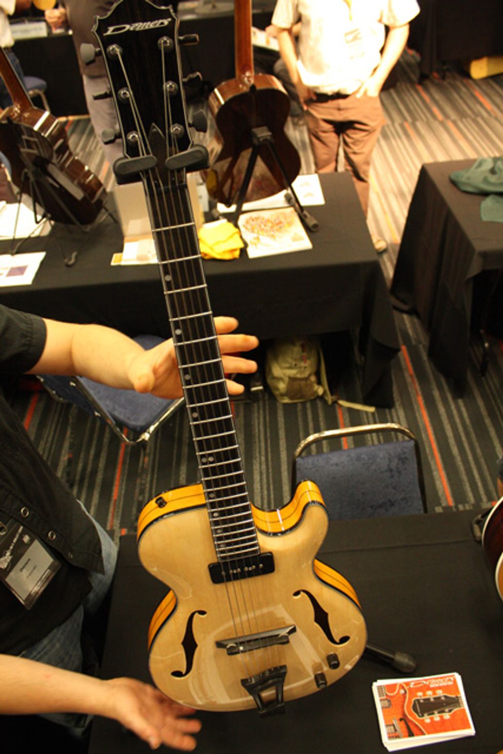 Jef Demers of Demers Guitars makes around 12 instruments a year and has been in the business since 1993. He specializes in electroacoustics and displayed two archtop versions of his Voodoo, one electroacoustic model and one L13 acoustic guitar at this year's show.