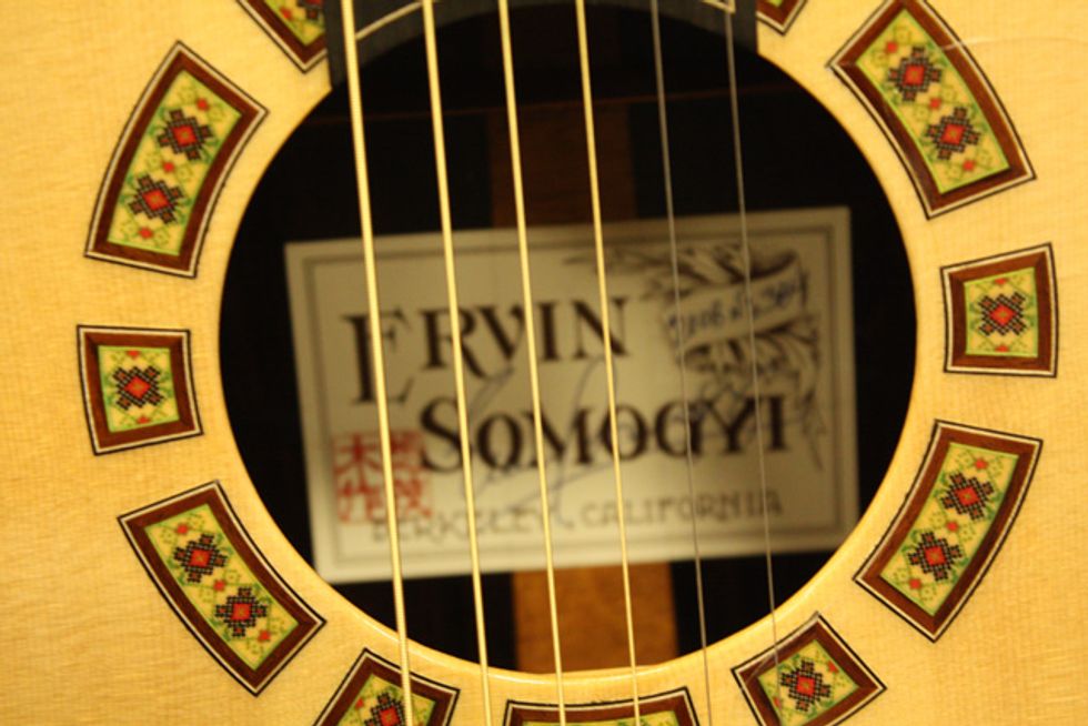 Ervin Somogyi is one of the best-known working American luthiers. He showed off two steel string guitars and this special guitar that represents a revolutionary turning point in professional lutherie work at the show. ![]() |