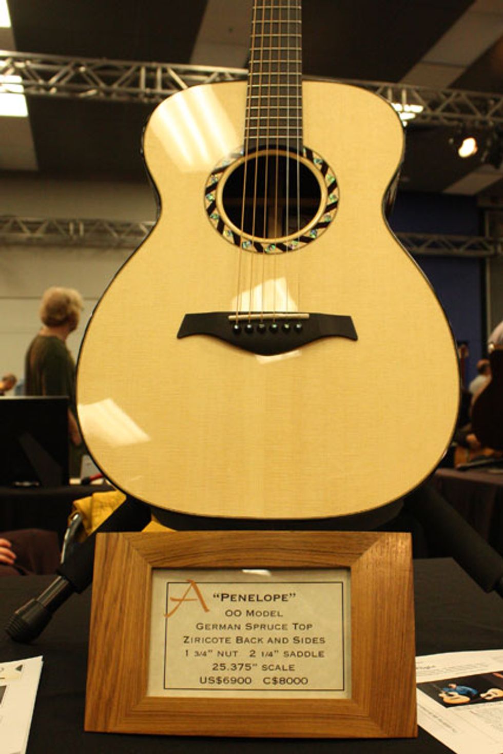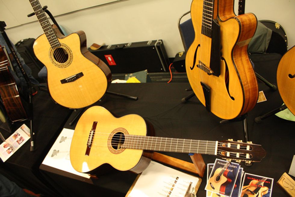 Martin Tremblay displayed three gypsy guitars, an OM folk guitar and an Irish bouzouki at the show. Tremblay serves as an ambassador for Quebec's up-and-coming luthiers.