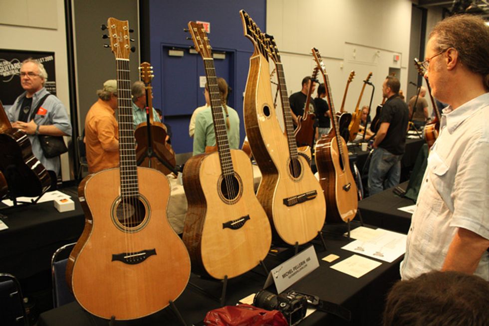 Les Guitars Pellerin specializes in creating high end acoustic guitars. Luthiers Michel Pellerin and Gilbert Blais exhibited four of their latest creations: two Grand Auditorium models, one Dreadnought Collection model, and one 20-string harp guitar.