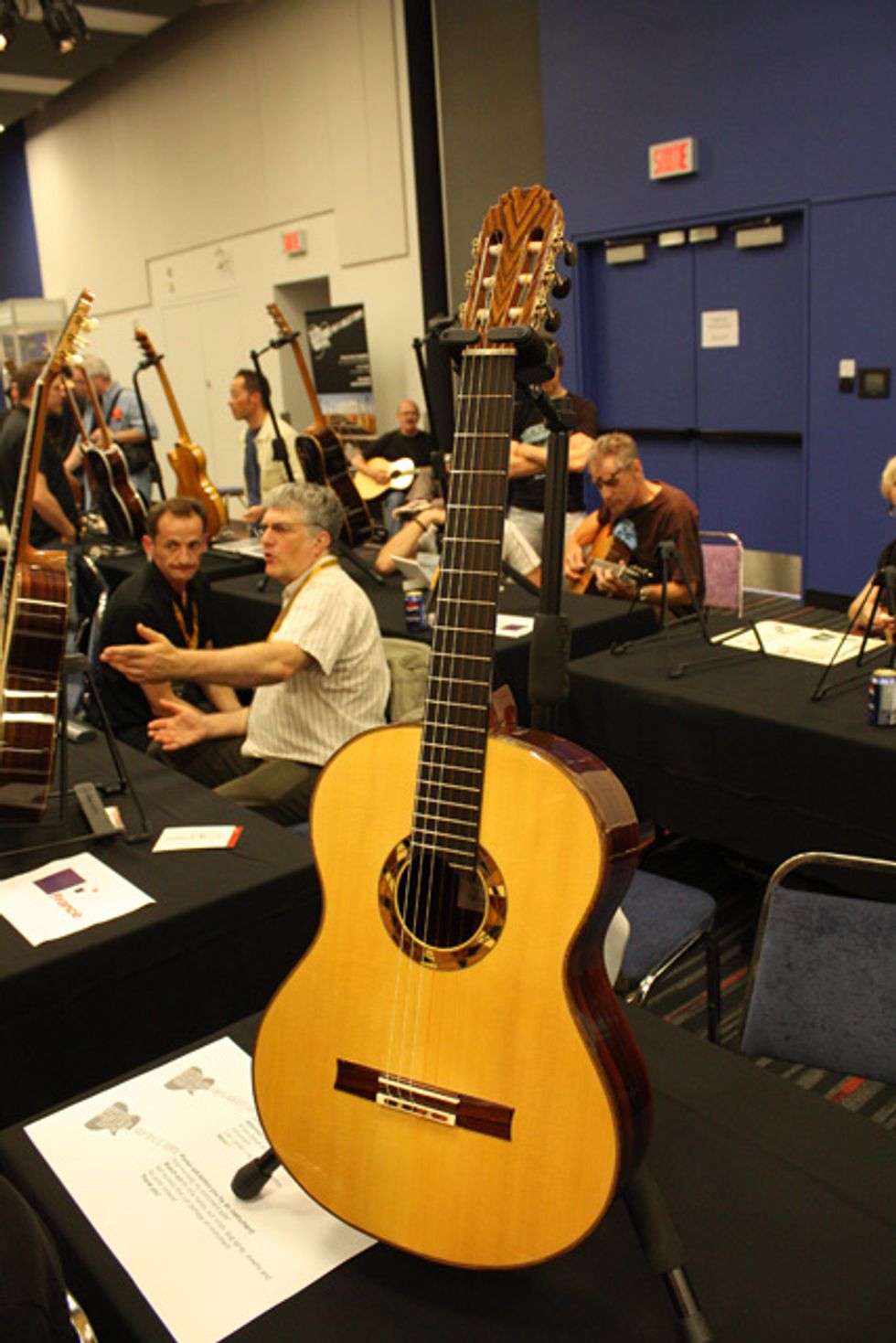 Jean-Yves Alquier specializes in building concert classical guitars. At the show, he presented his classical Juliette as well as a unique jazz guitar model built specially for the Montreal event.