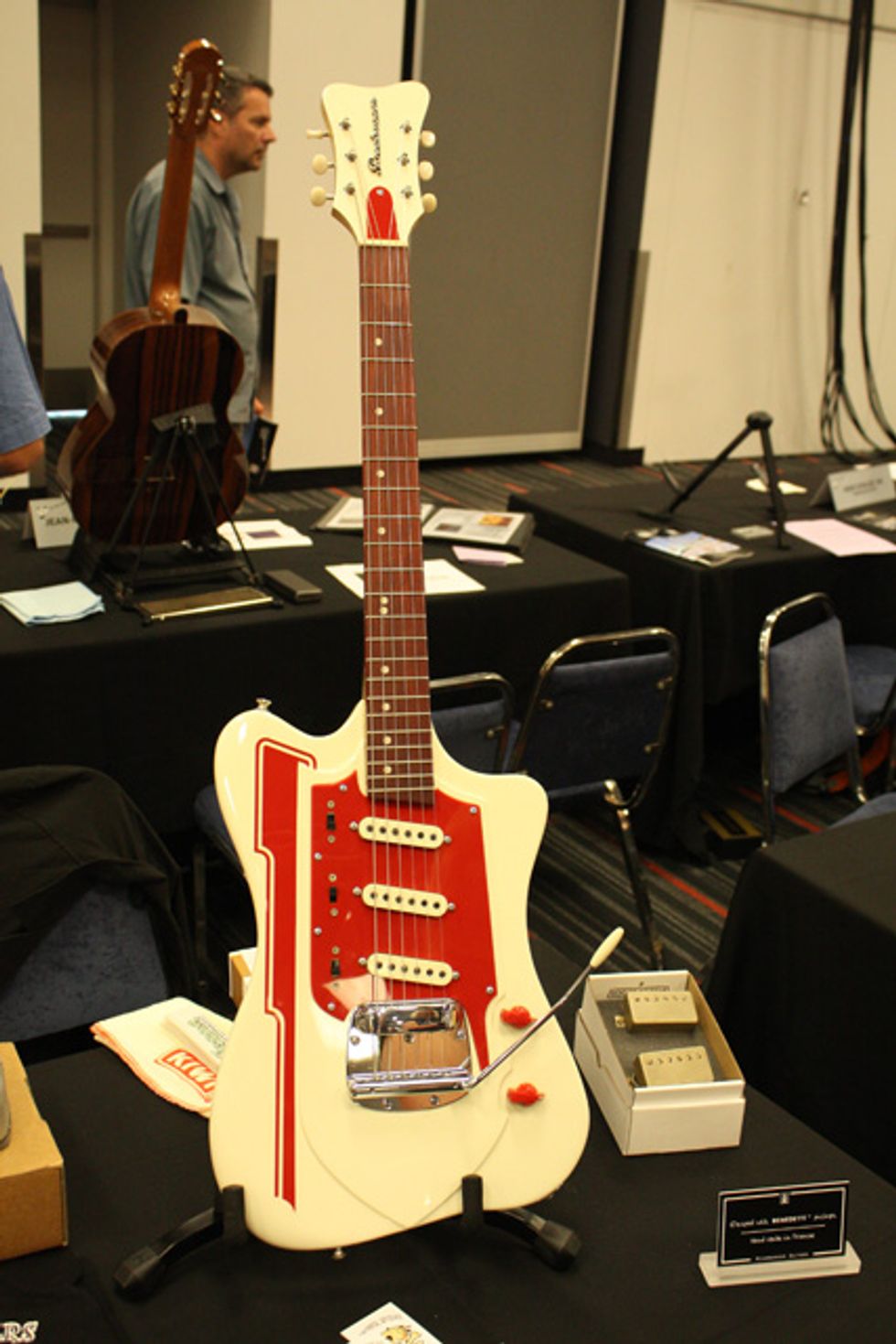Francis Vendramini of Vendarmini Guitars constructs electric, acoustic, folk and jazz manouche guitars. At the show, he exhibited a 12-fret turn-of-the-century/Parlor-style instrument and a manouche guitar.