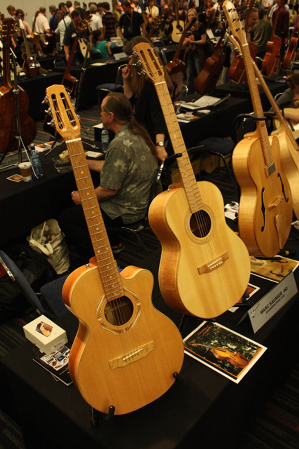 Marc Saumier of Saumier Guitars has been using Quebec-harvested maple, cherry and red spruce to create innovative guitars and basses since 1995. Saumier displayed his resonator, jazz archtop and manouche acoustic bass at the show.