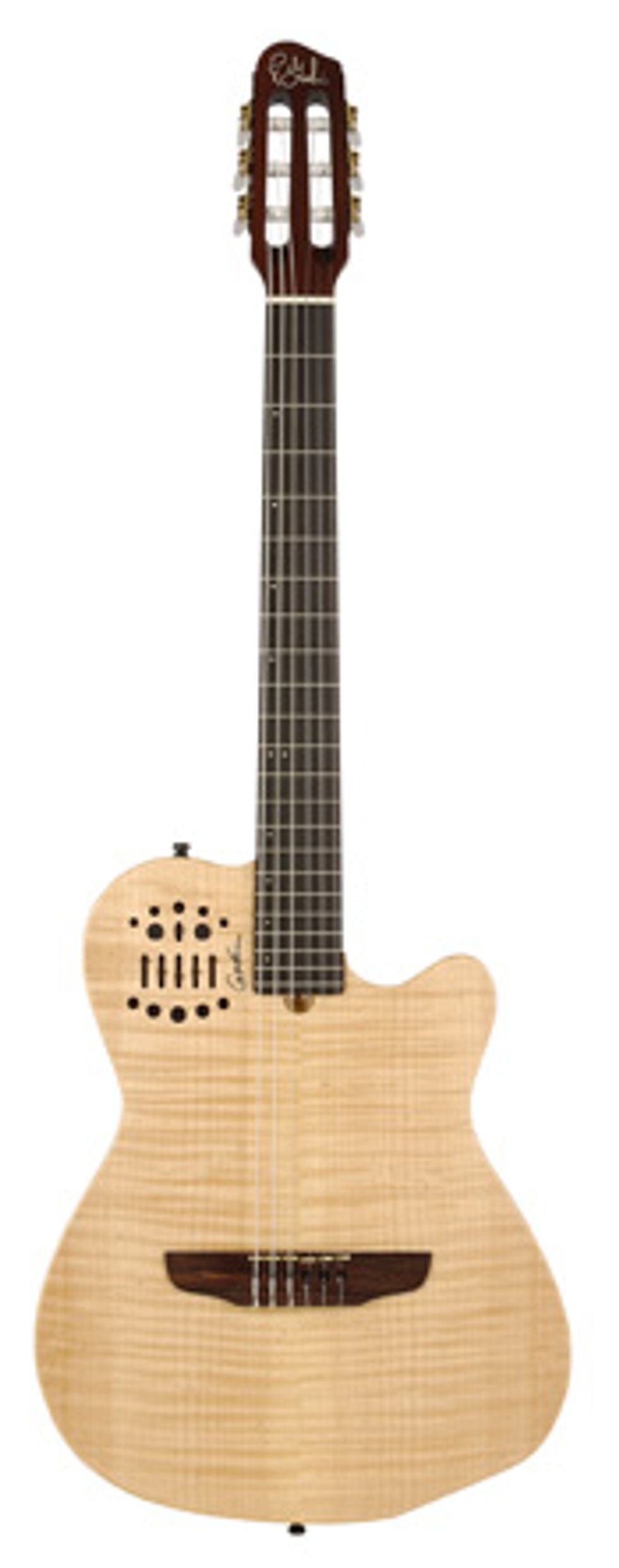 The renowned Multiac Series receives a few new faces this Winter NAMM. The first is the Limited Edition Multiac ACS Natural Flame. This stunning version of the popular ACS nylon string electro/acoustic guitar features a highly figured natural flame leaftop over a silver leaf maple body, ebony fingerboard, custom onboard preamp, ¼” output and 13-pin capabilities for computers and synth access.