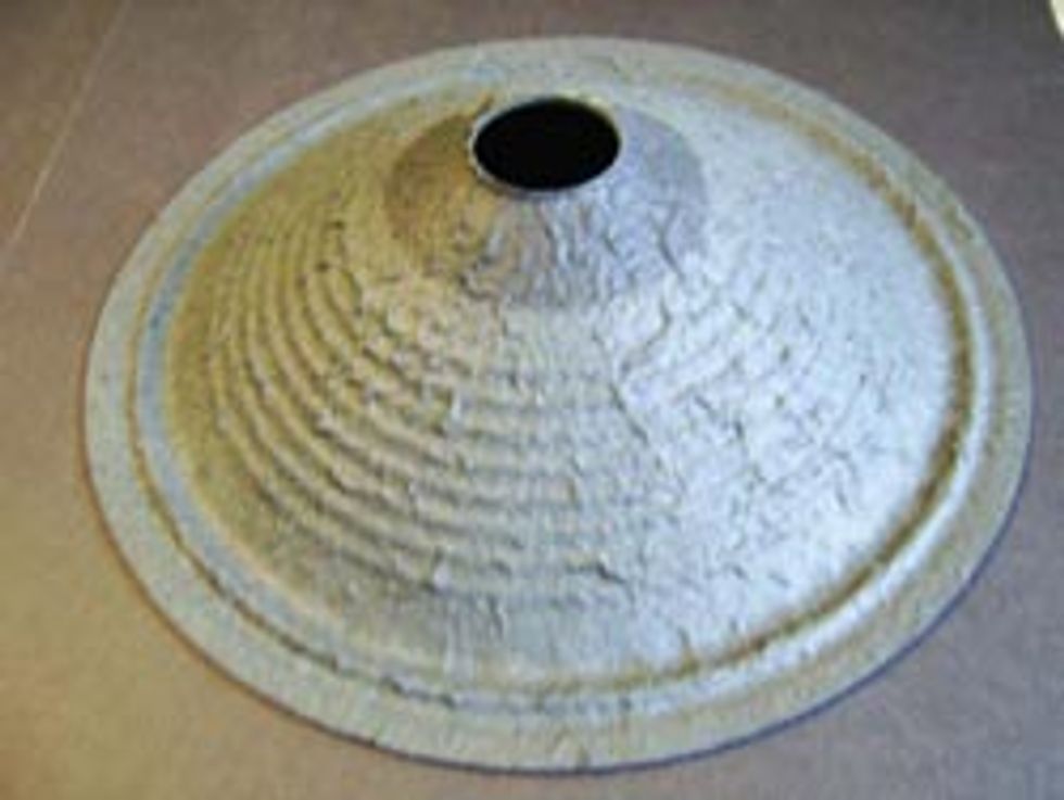 3. The wet cellulose is put between two hot molds (male and female) that dry the cone and determine its shape. The cones obtained are usually rather thin with edges that are even in thickness. This method produces cones with very consistent characteristics which are light and inexpensive.