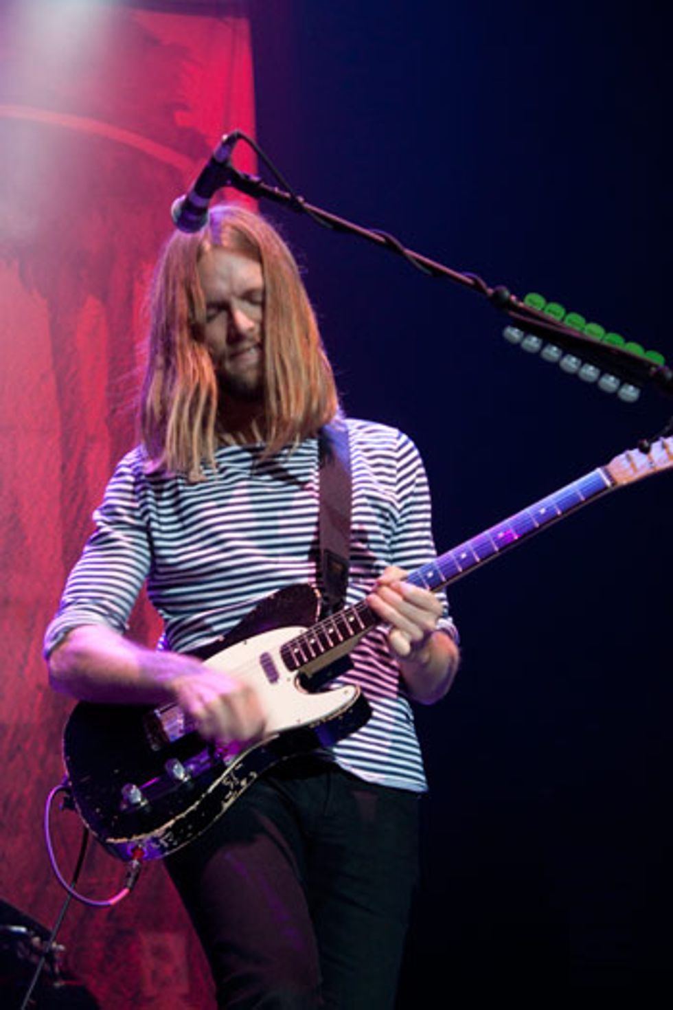 That black Tele Deluxe was actually Jesse’s and the headstock cracked all the way down to the neck… [laughs] It was an old guitar and I’ve been looking for a good Deluxe since we retired that one from the road. I just really like the Deluxe because it has the best of both worlds—it cuts through the mix and it is so warm. But lately the guitars I’ve been playing are these old, original ’70s Teles with single-coils and these new handbuilt guitars loaded with Lindy Fralin custom-wound P-90s.