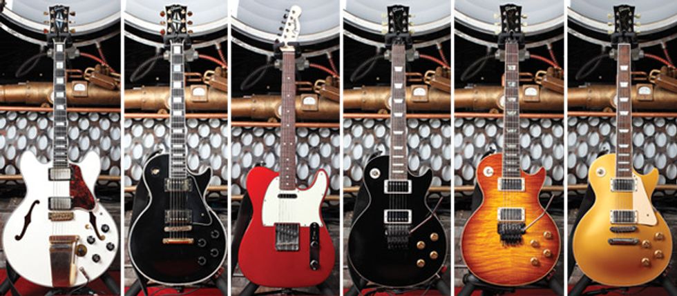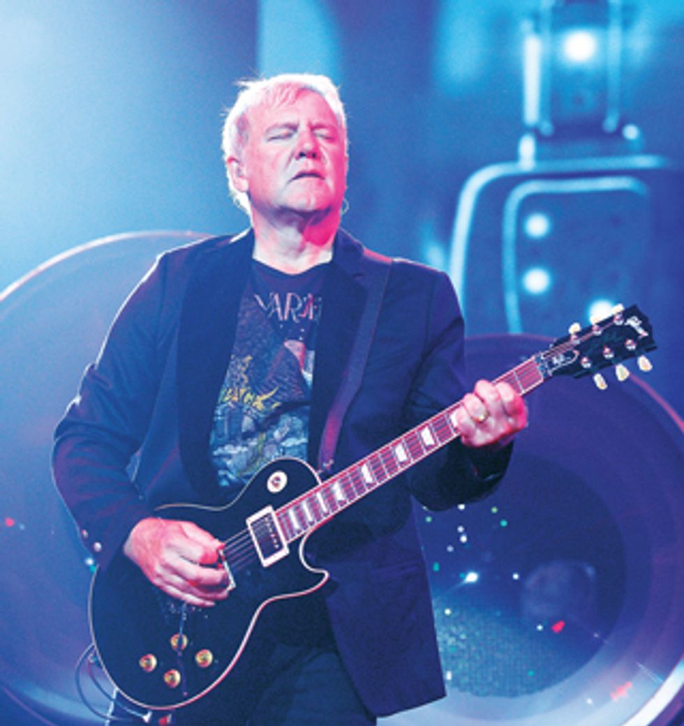 Alex Lifeson basks in the echoing glory of his favorite new signature Les Paul at a September 18 show in Auburn Hills, Michigan. “I gravitated to [it] for probably 60 percent of the record,” he says.