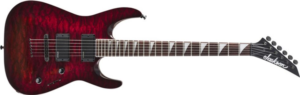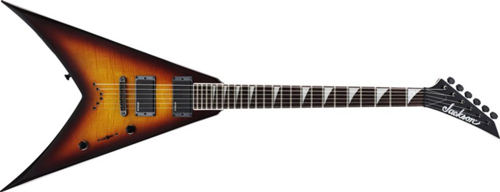The fittingly named Jackson Warrior WRXTMG has a killer-shaped basswood body, through-body maple neck with rosewood fingerboard, and active EMG 85 (neck) and 81 (bridge) humbucking pickups. Other features include 24 jumbo frets, three-way pickup switching and TonePros fully adjustable bridge with through-body strings. This model is available in Quicksilver with Black Bevels and Black finishes.
