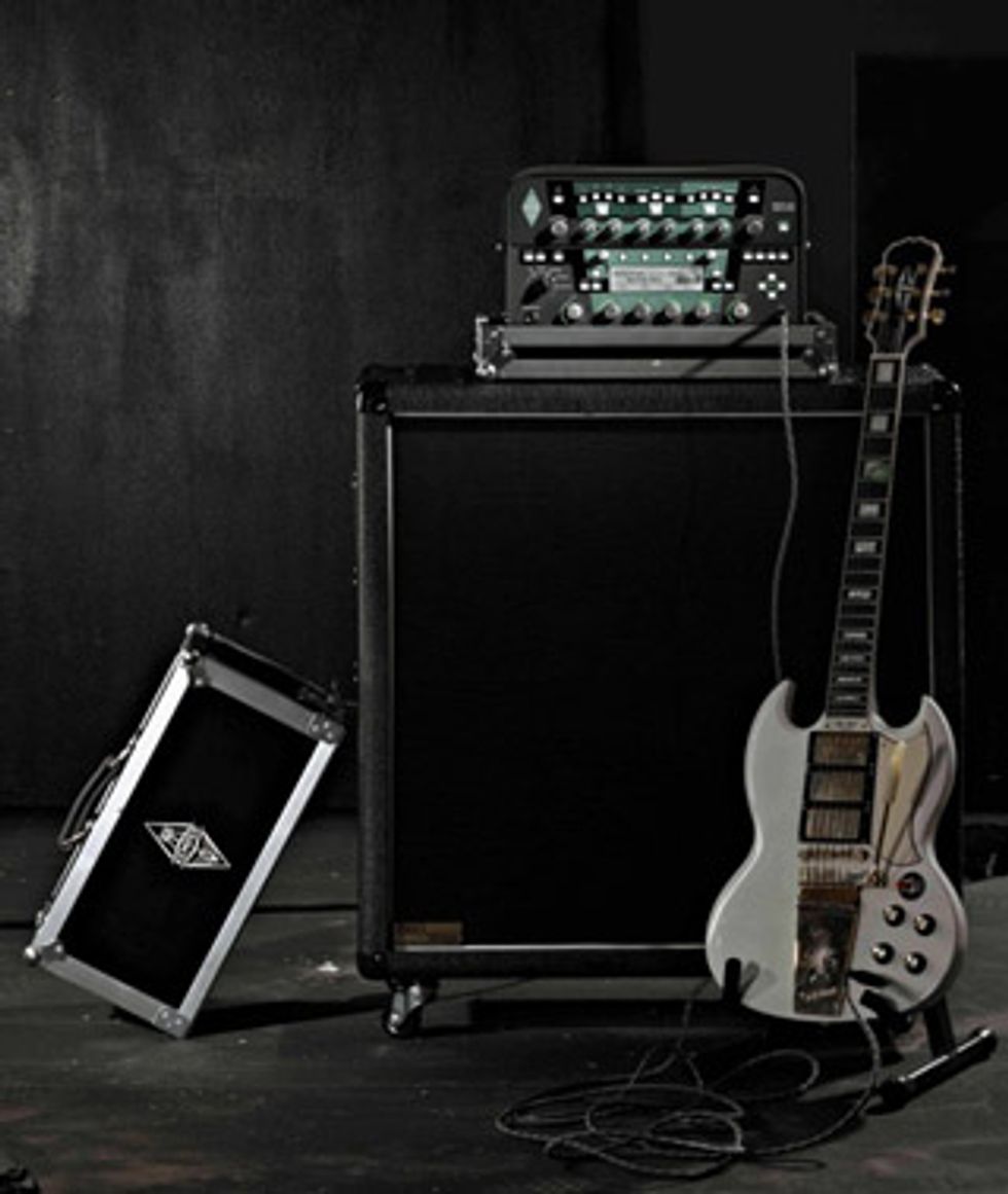 To get the perfect "amp in the room" sound on stage or in the rehearsal room, simply amplify the signal from the Profilers monitor output with any neutral solid-state power amp into a standard guitar cabinet. And now for the nifty bit: you can run the full profile to the main PA of the venue while simultaneously "cabdriving" your guitar speaker cabinet for monitoring on stage. This makes the Kemper Profiling Amp the perfect all in one sound solution for any guitar player that travels from the rehearsal room to the studio and to the stage.