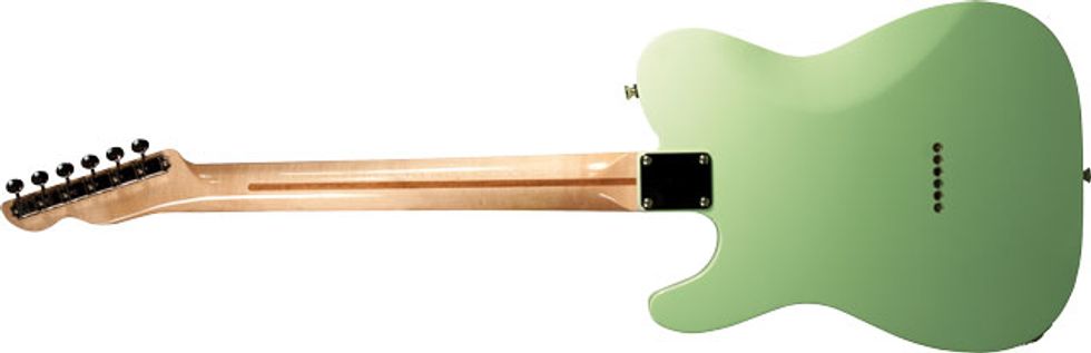 The most striking feature of the Bakersfield might well be the neck, which has a nice beefy profile lifted directly from a ’52 blackguard Telecaster, and an ample 1 3/4" nut width that’s a string-bender’s dream. The compound fretboard radius goes from a flat, Gibson-like 12" to an even flatter 16" after the 12th fret. Compared to a typical vintage 7.25" radius and 1 5/8" nut width, the difference is significant, feeling a bit like a comfortable acoustic guitar neck—little surprise given the name on the headstock.