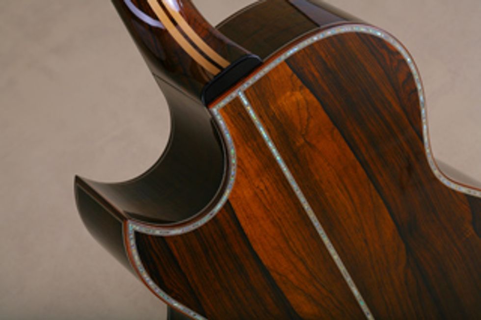 Luthier James A. Olson performs every aspect of guitar construction and has been honing his reputation as a fine flattop maker since 1977. Known for his custom tooling and high profile clients like James Taylor and Phil Keaggy, Olson’s starting price for a custom guitar is $12,500. He currently produces about 40 guitars a year with a wait time of about nine months.