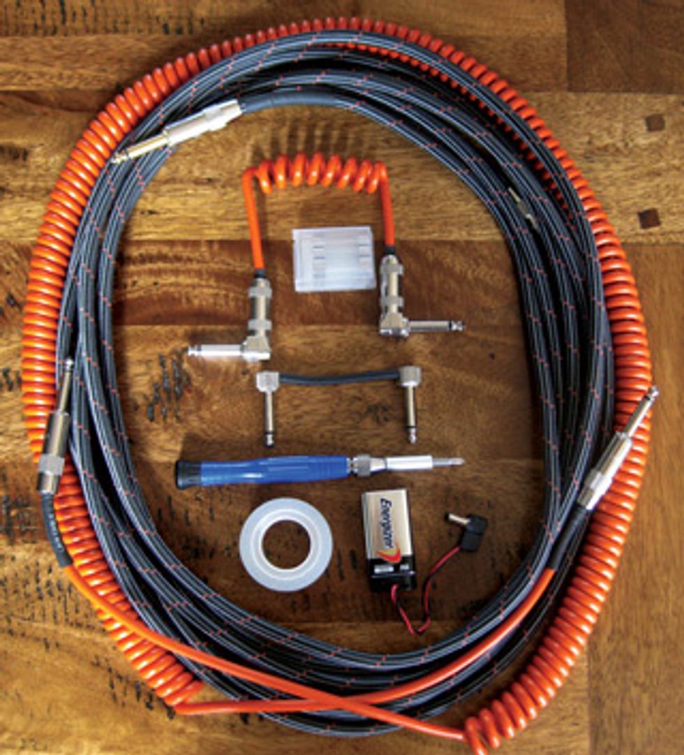 A gigging guitarist’s emergency kit should include extra cables, tools, fuses, a simple-to-build battery supply.