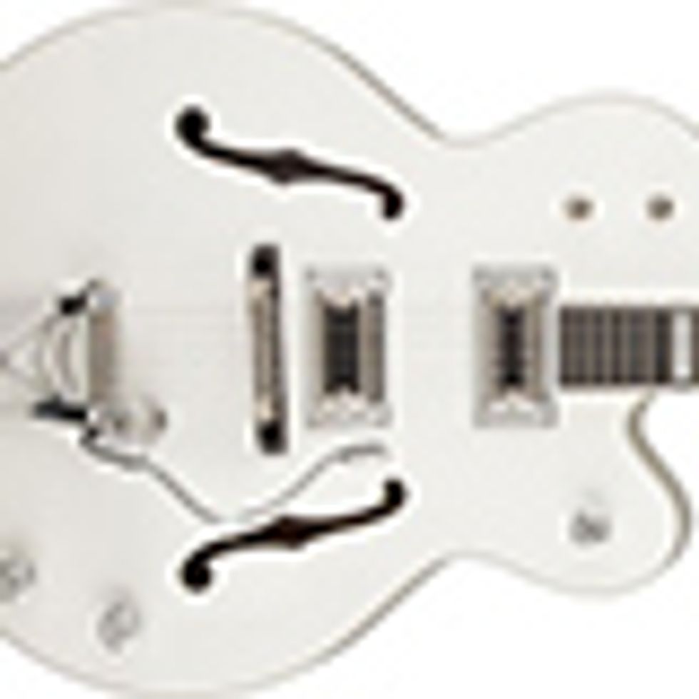 Gretsch Introduces Billy Duffy White Falcon The guitar features period-correct ’70s Baldwin-era styling, pure White gloss nitrocellulose lacquer finish, V-shaped Falcon headstock, Silver Sparkle binding, custom wound hot "Black Top" Filter’Tron pickups with three-point adjustable ’70s-style metal bezels and Duffy’s preferred Bigsby tailpiece. Read more... |