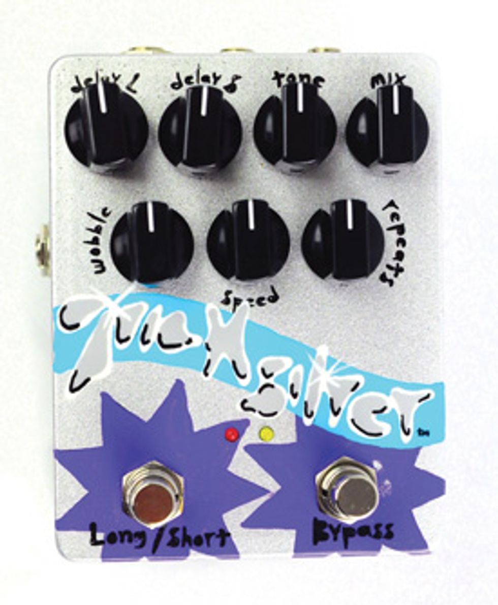 When I first plugged into this pedal, I tried out the Long Delay option with the following settings: Delay Long at 2 o’clock, Tone at 10 o’clock, Mix at 2 o’clock, Wobble and Speed at 7 o’clock, and Repeat at 5 o’clock. I was treated to a healthy dose of long, drawn-out delay, and to my surprise, no out-of-control feedback from repeat build up—the notes just trailed off in the distance. Turning the speed knob up, the waves became faster, building over the slow churning waves. With the Short Delay at 2 o’clock, I backed off on the Repeat knob to 2 o’clock and turned the Wobble up to 10 o’clock to add some modulation. It was still a bit dark, so I turned the tone knob clockwise to brighten up the tone, to get a tight slapback-style delay. Using a telecaster, I achieved an icy chorused twang, with a roomier sound.