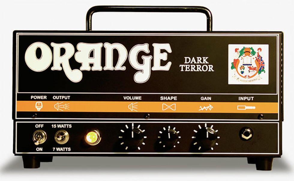 Frankfurt, Germany (April 4, 2011) -- Orange Amps has announced the new Dark Terror amp, which combines the shape control of the Thunder series with the weight and size of the monster Terror family. The 15-watt, class A amp is designed to have tons of gain and great responsiveness to address the needs of heavy metal and rock guitarists.