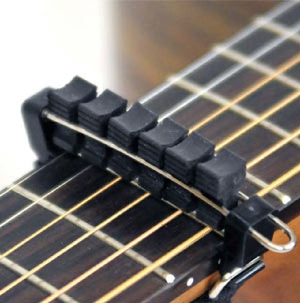 If you want a crash course in what can be done with these gadgets, check out some of Harvey Reid’s music, or another early user, Ed Supple, who did a lot of session work in Nashville and used partial capos to create sounds that nobody has quite figured out yet. He also introduced Michael Hedges to the partial capo, and of course that opened up entirely new territories.