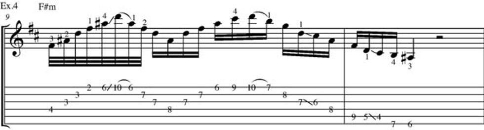 | Ex.4 Finally, we have a line using arpeggios from the F#