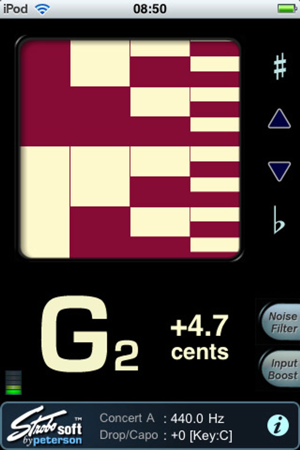 Knowing that customers might attempt to use the Peterson interface for other guitar-related apps from Apple’s App Store, I decided to fire up Sonoma’s FourTrack interface with the unit. The adapter cable doesn’t have a jack for headphones, so it was impossible to monitor the sound coming from my guitar. I could see the level for the track that I enabled for recording, and that was the only indication that my guitar signal was coming through. The iStroboSoft adapter cable is a quick, inexpensive way to directly plug into Apple’s phone, but could definitely benefit by adding a headphone jack that would allow the player to use it with more than just Peterson’s tuning app.