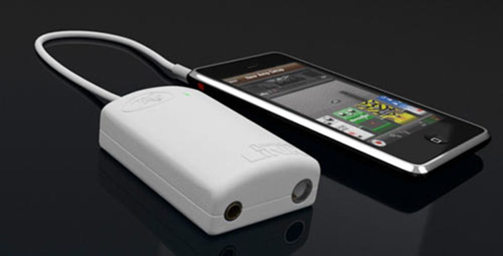 The Peterson iStroboSoft interface cable is probably the simplest of the six interfaces that PG received. The unit consists of a sturdy, single ¼” input, with a small cable protruding out that plugged into the iPhone’s headphone jack. It’s primarily designed to work with the company’s $9.99 iStroboSoft tuning app, which also works with the iPhone’s internal mic. For those with an iPod Touch, Peterson also offers a small, pill-sized external mic that plugs into the device’s headphone jack. Using a 1997 Fender Jazzmaster, the iStroboSoft software’s tuning accuracy improved greatly with the adapter cable. With a 1978 Gibson Les Paul Custom with hot Tom Anderson pickups, the software program’s level meter clipped a few times, which signaled to me that the interface has a difficult time handling hotter input signals. The tuning accuracy wasn’t affected however, and the iStroboSoft program still showed that it’s one of the best iPhone guitar tuning programs available.