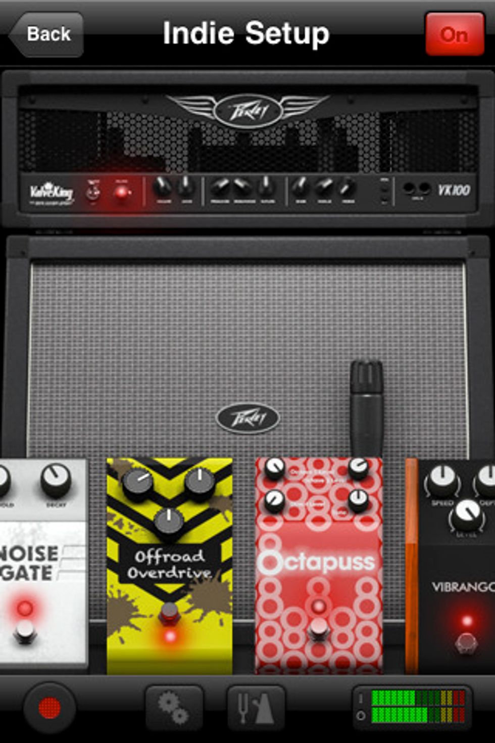 Peavey’s little AmpKit LINK interface is similar in construction to most of the other interfaces. The diminutive box has instrument and headphone jacks, and a small cable that runs into the headphone jack of the iPhone. Unlike the other interfaces in this roundup, the AmpKit LINK is powered by two AA batteries, which Peavey says eliminate feedback when using headphones. I didn’t experience any headphone feedback using the unit, but that benefit comes down to weighing whether you’re worried about packing away some spare batteries in case they die—I didn’t experience distracting feedback with non-powered units, either. On first impressions, the box’s plastic build quality seemed flimsy compared to some of the other units, but I soon forgot about it after firing up its matching software, Agile’s AmpKit.