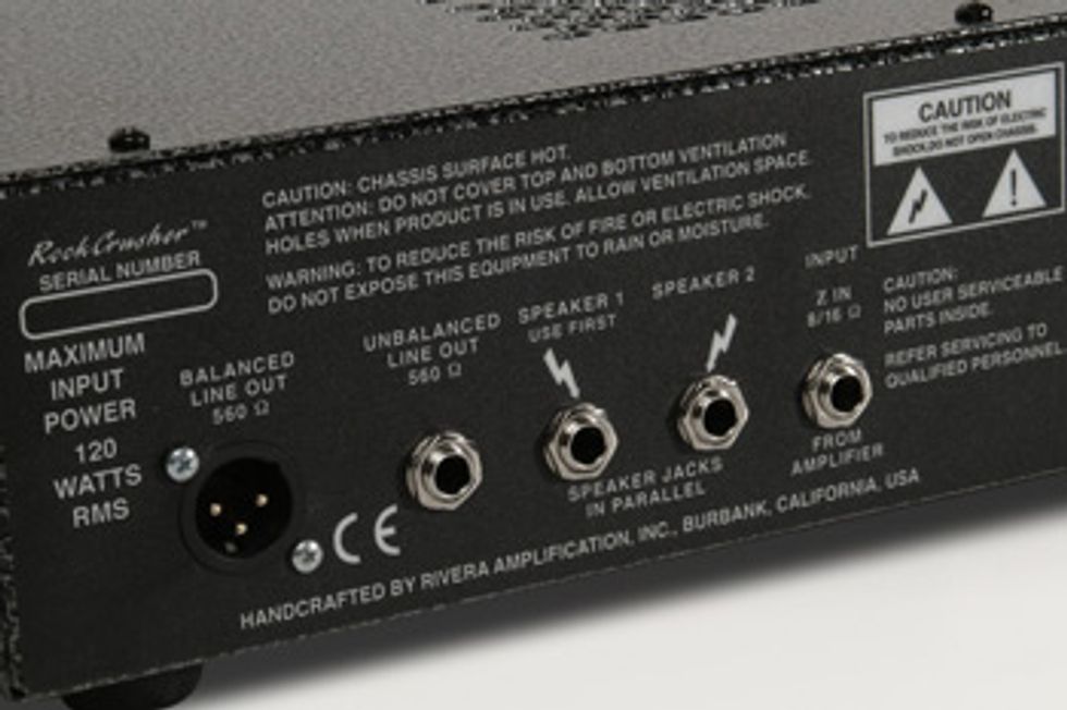 Burbank, CA (January 22, 2011) -- Designed for stage and studio, Rivera’s RockCrusher attenuates the signal coming from an amplifier so that the full tone of the amp can be captured without running speakers at full volume or dialing down the master volume. Rather than using a purely resistive load like many of the other power attenuators, the RockCrusher ensures that the amplifier and speaker “see” each other in a proper relationship of impedance and inductive/capacitive reactance.