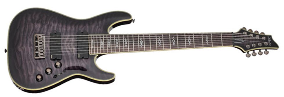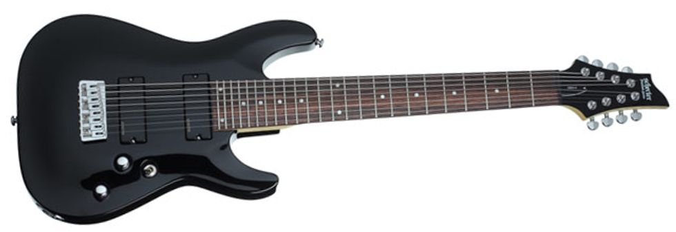 Due to the overwhelming success and appetite for their 8-string guitars, Schecter’s newest offering is the Omen-8, THE most affordable 8-string on the market, Keeping with the standard features of the Omen line, it includes a basswood body, a rosewood/maple bolt-on neck, high output Schecter Diamond Plus pickups, GraphTech Black Tusq XL nut, an 8-string TOM and chrome hardware. A double graphite rod system is employed in the 26.5” scale neck for added strength and reliability. The new model is offered in Walnut Satin and Gloss Black.