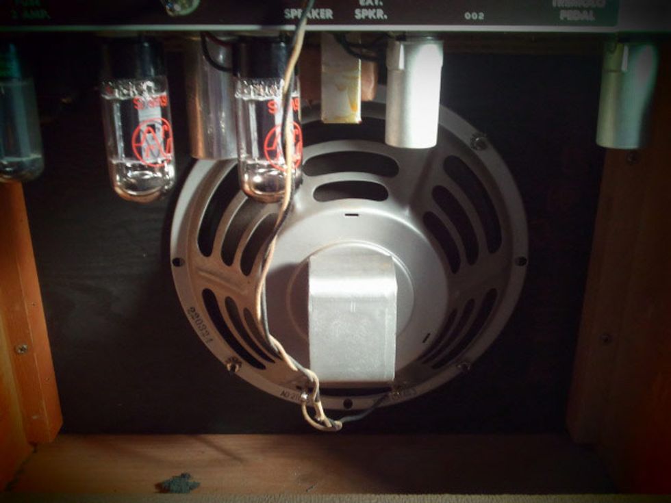 As I progressed further into the amp by checking the resistors, caps, wiring, solder joints, and cleaning/tightening the tube sockets—I considered the tubes. There is a 5Y3 rectifier, two 6V6 power tubes and two 12AX7 preamp tubes—all vintage. The preamp tubes, a vintage Bugle Boy and a vintage Tung-Sol, were left alone after testing output and carefully listening for microphonics and noise. These great sounding and reliable tubes have survived many years and should survive many more. The rectifier tube appeared to be in great shape and was left alone. However, the power tubes were replaced with some known reliable ones because power tubes tend to have a shorter life span than the other tubes in an amplifier. When reliability and the demands of touring are important, it’s always a good idea to replace them. It is also a good idea, as a tech, to give the owner of the amplifier an extra set of tubes of the same bias as the ones you are putting in. If the tubes fail on the road, the band can replace them on their own, without worrying about proper tube biasing. I also like to tape an extra fuse or two to the inside of the amp’s cabinet, just in case a fuse blows. These simple things can make an amp failure much easier and less expensive to manage when on the road.