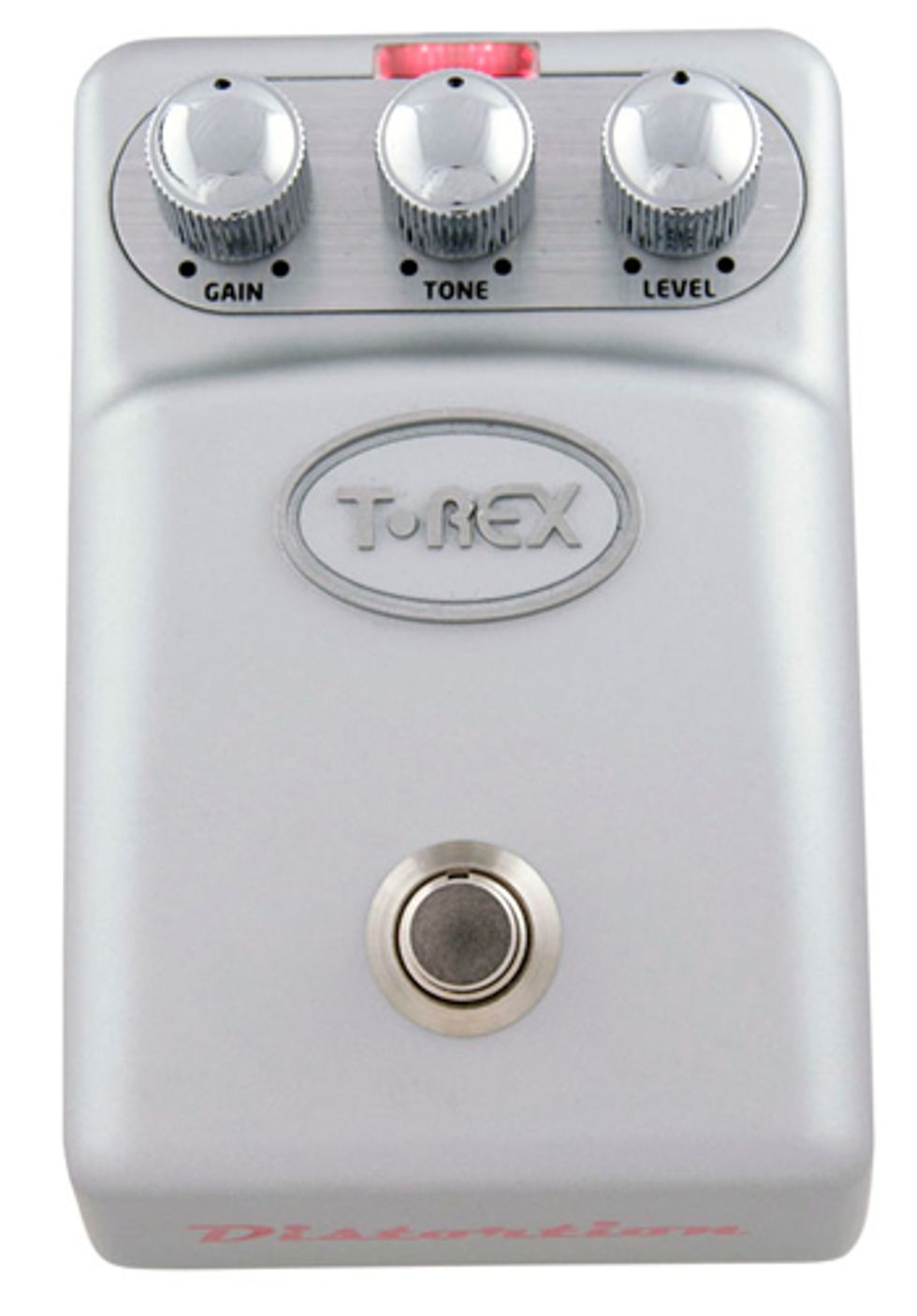 Unpacking the ToneBug Distortion, it's clear this pedal is built to last with its sturdy unpainted cast metal housing with smooth corners, metal knobs and switch. The huge, red status light makes it easy to see if the pedal is engaged, even during bright outdoor shows. Input, output, and power jacks are all located at the top of the pedal, comfortably spaced apart so connecting to your other pedals and power supply is a breeze. The pedal is powered by the standard 9 volt DC plug-in (center pin negative, 8V min. to 12.5V max.) or battery. The battery hatch is located on the bottom of the unit and is easy to access--no screwdrivers needed. This is a clean, simple pedal with three knobs to tweak your noises: Level, Tone, and Gain. One minor complaint on the pedal's aesthetics is that the dots on the knobs are quite small and hard to see against the convex chrome tops, especially when maneuvering in the dark. The overall dimensions of 4.75"L x 3"W x 2.4"H present a rather friendly footprint for precious pedal board real estate.
