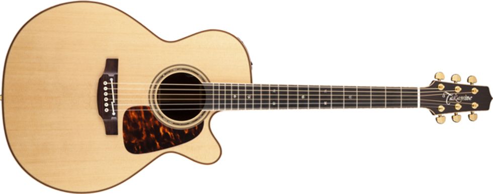 Premium design appointments include an ebony fingerboard with maple binding, traditional abalone “snowflake” inlays, a dark rosewood headcap with abalone Takamine logo, gold tuners with gold buttons, and a natural bone nut. A split bone saddle provides faultless intonation, while bridge pin positioning optimizes break angle to improve sustain and presence.
