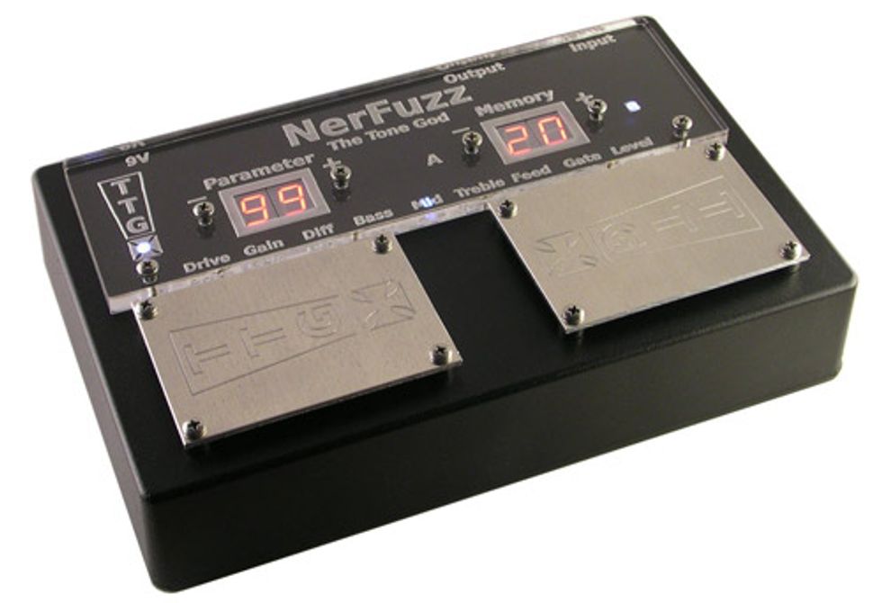 Oakville, ON (November 17, 2010) -- The NerFuzz is a programmable fuzz effect, capable of producing tones ranging from mild blues overdrive to experimental fuzz chaos, using nine control parameters including an active 3-band EQ, through the noise-gated 100% analog signal path. The differential control enables octaves and swell effects. The adjustable feedback loop will create sonic mayhem. Sounds are stored in 20 memory positions, each with two patches for a total of 40 sounds – selectable with hands free switching.