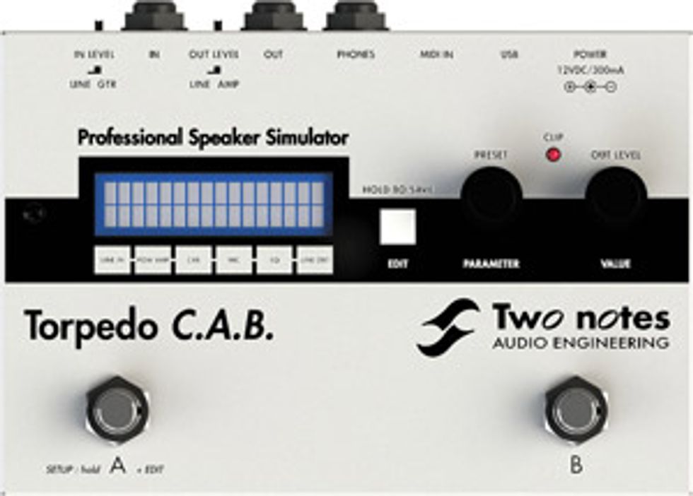 Los Angeles, CA (February 8, 2012) – Two Notes Audio Engineering has announced the upcoming release of Torpedo C.A.B., a new stomp-box providing cabinet simulation to any guitar rig based on a pedalboard.