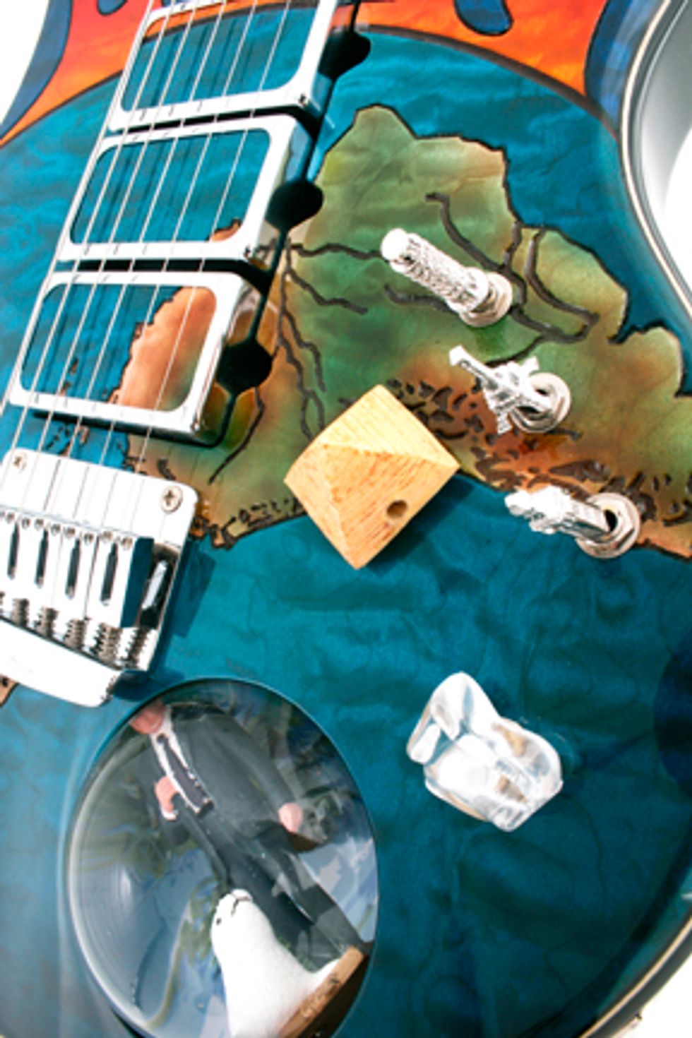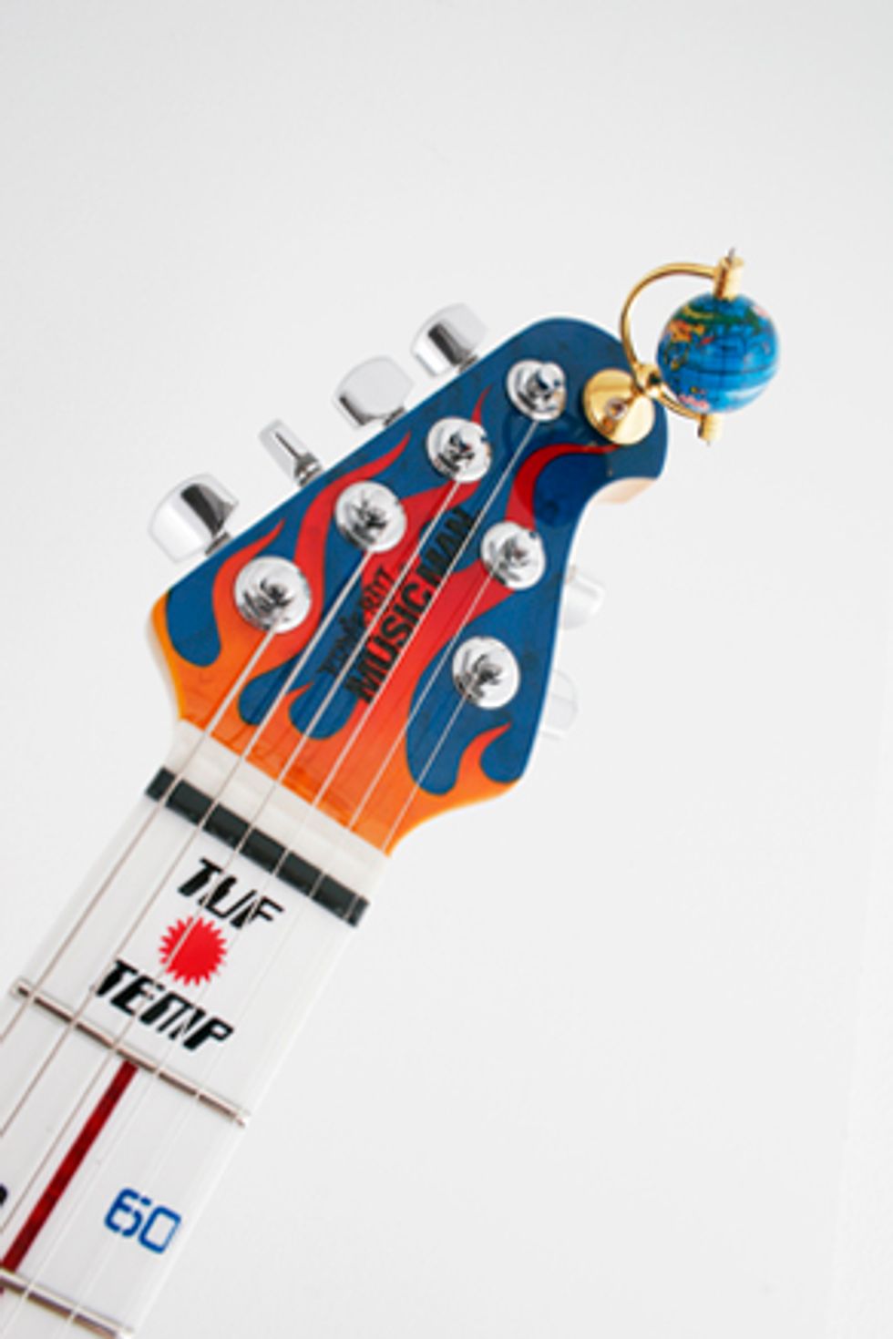 SAN LUIS OBISPO, CA (July 12, 2007) – In anticipation of last week’s LIVE EARTH global live music phenomenon, Ernie Ball Music Man has created a one-of-a-kind Global Warming Guitar – an incredibly elaborate guitar that merges plenty of creative global warming kitsch with the amazing sound and quality expected from Music Man’s elite collection of special edition instruments.