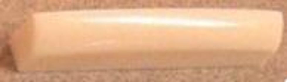 ![]() | Bone Bone remains the “king of nuts,” and is the historically correct material for vintage guitars. Nothing is as sexy as a polished bone nut on a one-piece maple neck! The tone is very balanced and the open strings are never too loud or shrill, and it will last a long time. It is important to use unbleached bone, because it naturally self-lubricates, which helps you stay in tune when using a tremolo. Plus, cosmetically, unbleached bone can be polished to a higher shine than bleached bone. I prefer unbleached camel bone. It is comparable to ivory in tone and appearance, and has a very even density. |