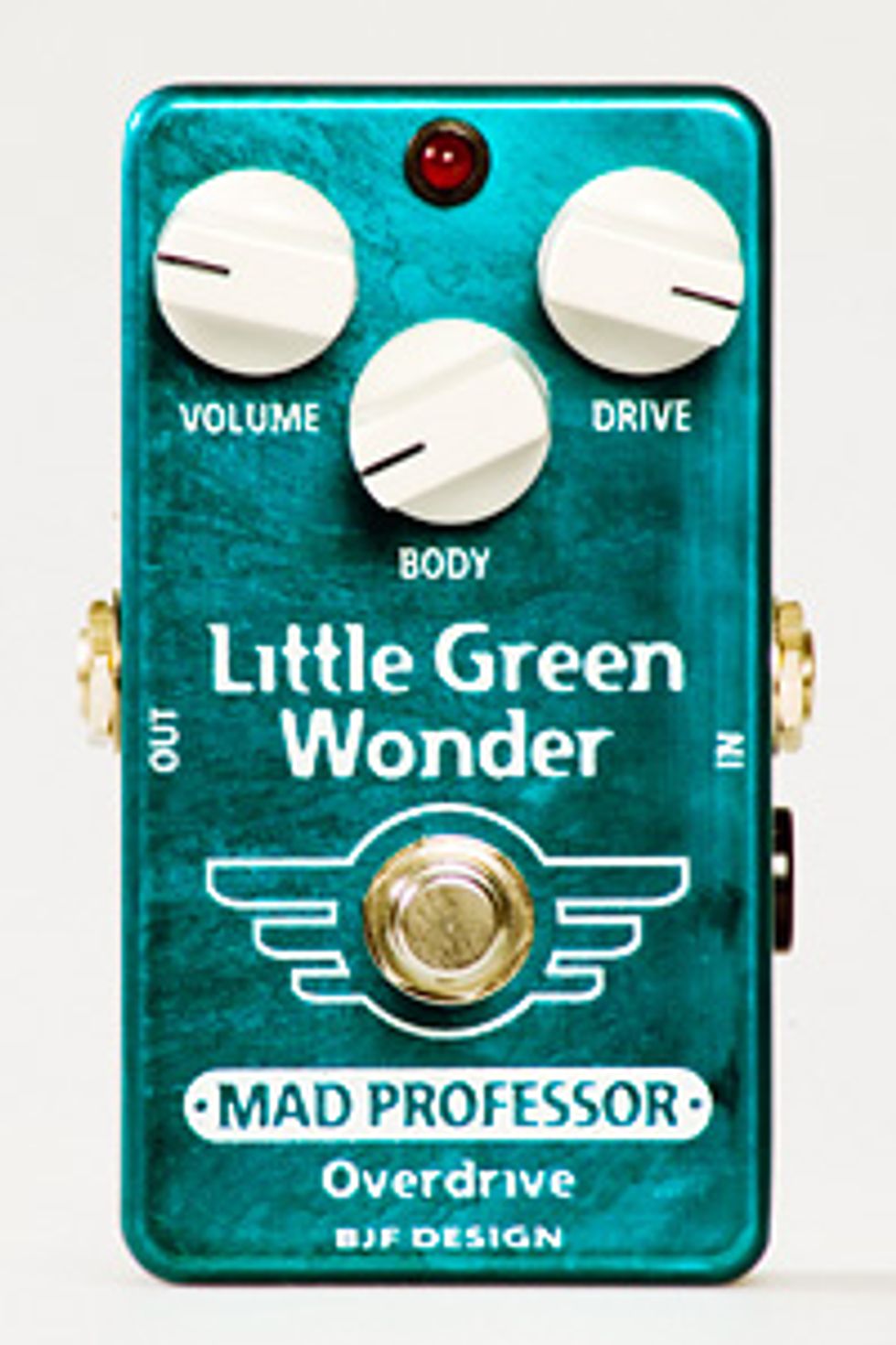 by Adam Moore Designer Bjorn Juhl describes the Little Green Wonder on the Mad Professor website as, “a TS-style pedal, but one for those who generally don’t like TS-style pedals.” After playing this pedal for a decent amount of time, you’ll quickly realize that Juhl has found perhaps the most effective way to describe it. While it’s near impossible to write a review of the LGW without a Tube Screamer comparison or three – even if you’re trying to block it out of your mind, the metallic green housing and the name itself will function to remind you what you’re playing – the LGW follows faithfully in the Mad Professor formula of pushing circuits towards the more refined side of the spectrum. From the very start, you’ll likely feel like you’re plugging into an old friend; the Volume knob acts as expected, and reveals a huge amount of headroom hidden beneath the surface – cranking the Volume with the Drive all the way back reveals a more than capable clean boost. The Drive knob takes things from a barely-there grit to full on Stevie Ray in a fairly tight range, and at all settings the LGW was exceptionally responsive and dynamic – it felt like it was truly a part of my amp, not an add-on in the signal chain. And while a good Tube Screamer feels like this too, the sheer transparency of the Mad Professor LGW makes this pedal the ideal partner for any number of the complex boutique amps currently dominating guitarists’ X-mas wishlists. With less compression and more warmth than the other green box, the LGW steps out of the way and lets your [insert pricey boutique amp here] do all the talking. But if the LGW was just a high-end clone, we probably wouldn’t be this excited. The Body control is the real secret here, expanding its tonal range and voice. While there’s always an element of midrange present in the LGW, you now have a lot more versatility in how to harness it. With the Body control at noon, you’ll hear that classic midrange “hump”; pushing it to the right adds in a treble boost and gives the LGW extra clarity and cut; turning it to left adjusts the boost downward into the low-mids, imparting an full figure to the signal, perfect for those smooth solos and cool autumn evenings. It cleans up perfectly with a turn of the volume knob, and plays nicely with humbuckers, as well. If you’re yearning for a TS-type pedal that is in reality a lot more, you’ll definitely fall in love with this Little Green Wonder. If you can swing the price tag, do yourself a favor and plug into the latest, greatest export from Finland. Buy if...