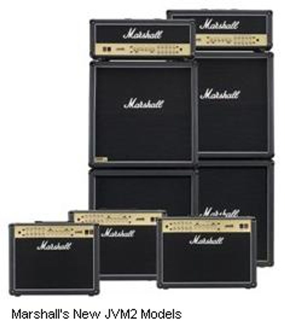 Marshall''s five new JVM2 Amplifiers include two heads and three combos. Equipped with five 12AX7s and either two or four EL34s ( for 50-watt or 100-watt, respectively), these amps join Marshall’s JVM4 models to create a JVM family of the most versatile and highest gain all-valve Marshall amplifiers to date. Models and prices in the JVM2 series are: