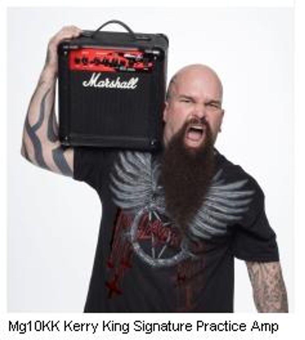 The new Kerry King Signature MG10KK practice amp combines King’s look and attitude with Marshall’s legendary sound in a portable, ready-to-shred package, complete with an exclusive DVD featuring King’s personal practice tips and advice. “My friends at Marshall have been cool enough to produce my own ass-kicking practice amp. The MG10KK – heavy as a pair of concrete boots!” remarks King proudly.