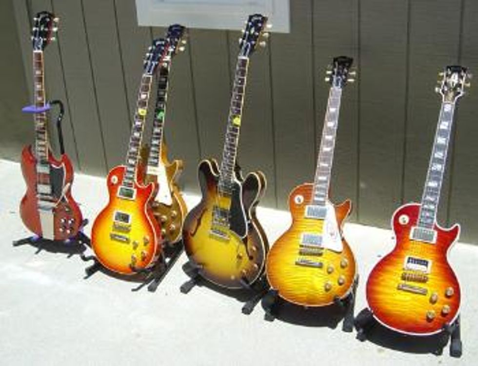 "Here are a few of my prime Custom Shop Les Pauls a few years ago. These are some of my favorites actually. However, I have never found one guitar or amp that does it all. There is no true "favorite” -- they are all different. I have never had a guitar I thought was "the one." Perhaps this is the devil’s snare for materialism. I also could not fathom buying a real ''59 because I already worry enough when I put a ''59 reissue in the back seat of my car. Imagine getting a $300,000 guitar stolen?