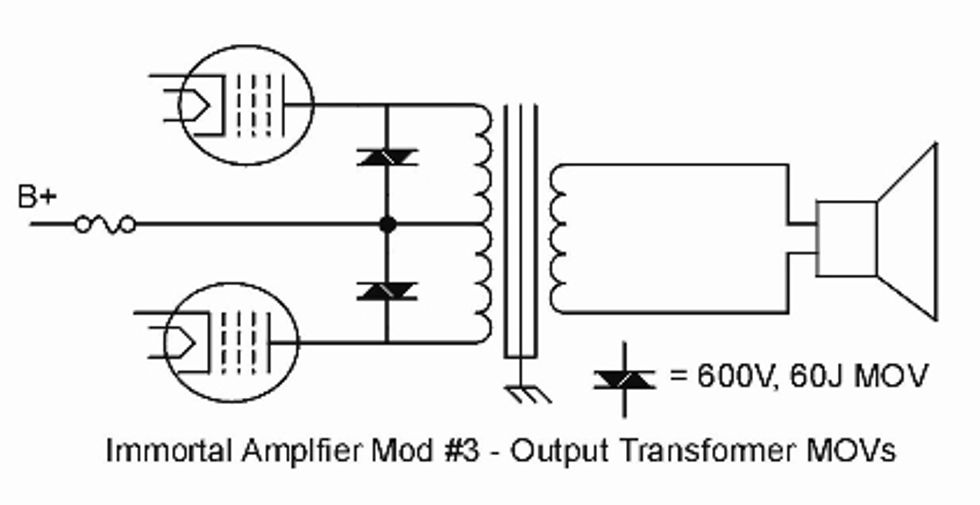 Immortality Mod #3: Stop transient spikes Our AC power lines get more polluted every day with the leftovers of all the electronics and mechanical equipment that run on them. There’s also the infrequent but real danger of a nearby lightning strike on the AC power lines putting a big spike into your amp.