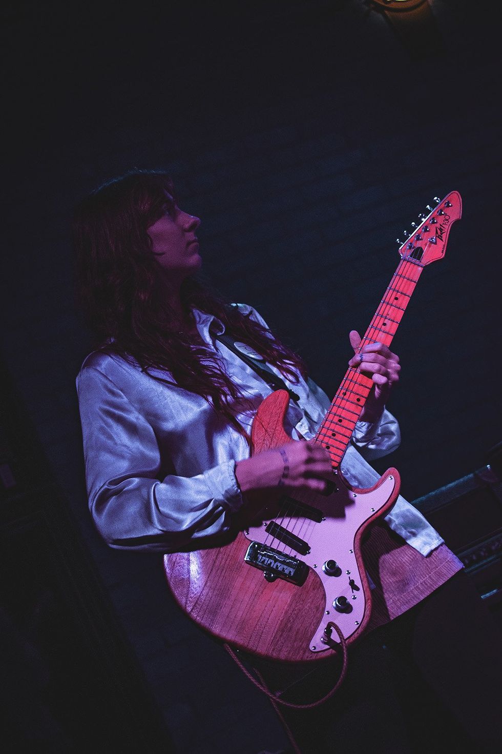 While Anderson plucks out finer lead parts, Garner says her role is to create a “giant wall of sound” with open chords and thick distortion.
