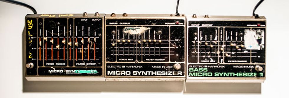 Hischke: The Electro-Harmonix Superego Synth Engine is relatively new. It’s a takeoff on the Freeze pedal, which was a very useful idea. The glissando and portamento functions are the most interesting to me. I used it a lot on the new Dot Hacker record. It’s another one I don’t think I’ll ever get rid of. I love it when a piece of equipment gives you the ability to do something that was previously impossible. I wish more people were doing that.