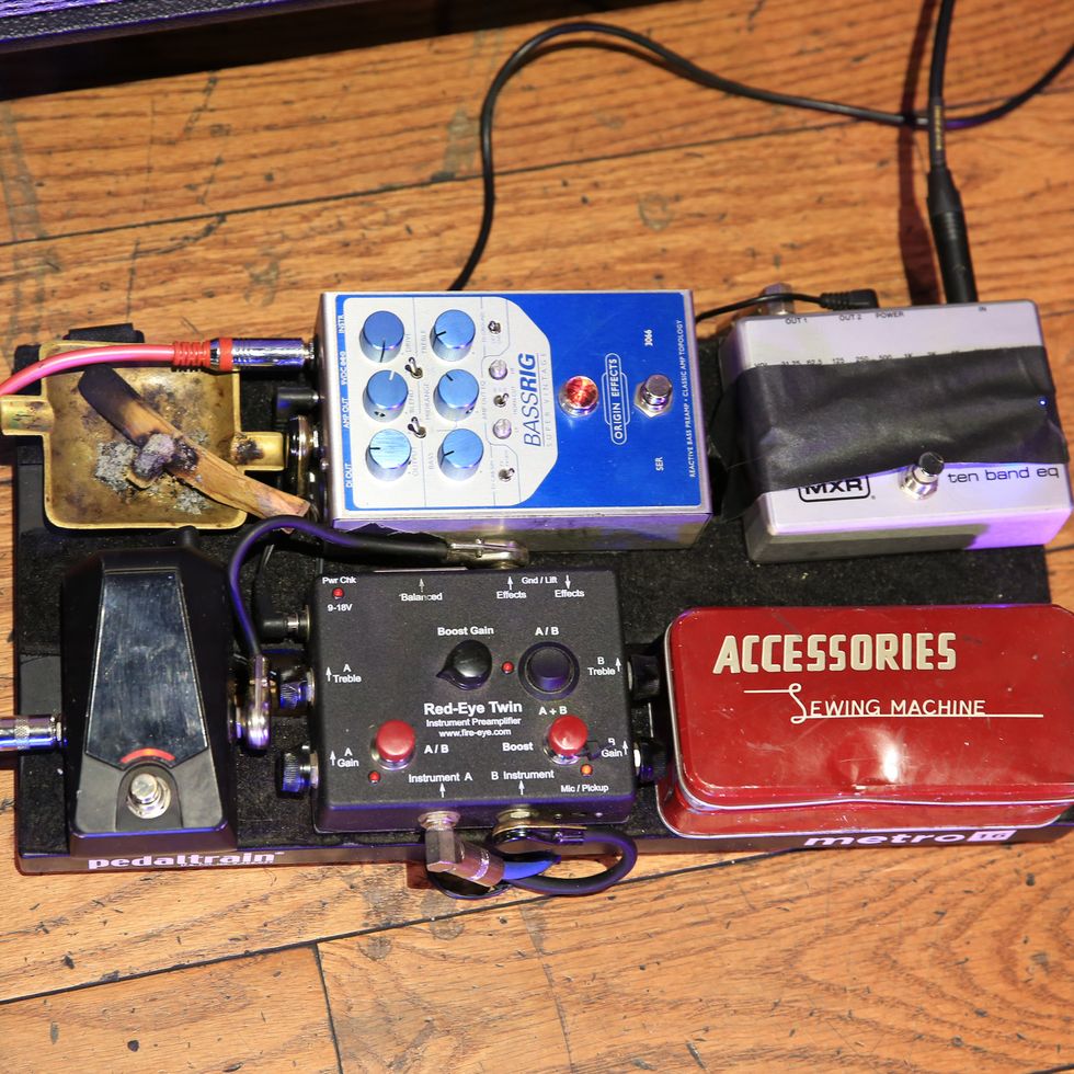 Even though Porter has reached immortal status in the bass world, he's still relentless in his pursuit of the musical truth. He religiously documents every performance he can. "I have a little Zoom H4n, and I record, like, 100 percent of the shows that I'm in control of. It has four inputs, so I take two channels from the desk and the two ambient mics that's on the front of the H4, and every night I record four tracks. I have three 2TB hard drives that are full, and I'm working on trying to categorize the different gigs to a 4TB drive. I'm trying to gather all the Funky Meters shows that I have, all of the Runnin' Pardners shows that I have, all of the Porter trio shows that I have, and all the jam bands that I played in, and I'm putting them in. I've got that drive divided into four pieces."