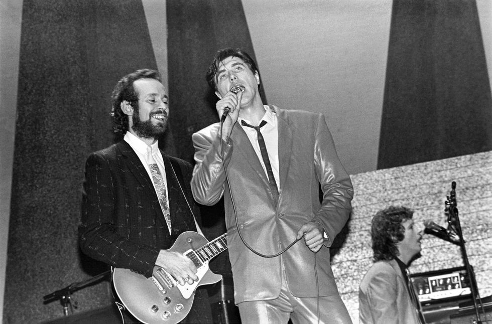 In the early days of Roxy Music, Manzanera mixes it up with Bryan Ferry—and a goldtop Gibson Les Paul.Photo by Ebet Roberts