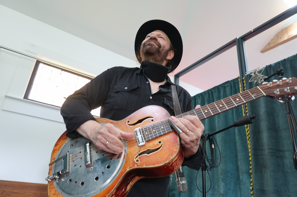 Onstage, Linden effortlessly ricochets between original songs, traditional blues and gospel, and textural playing based in traditional roots music that reaches for the cosmic.