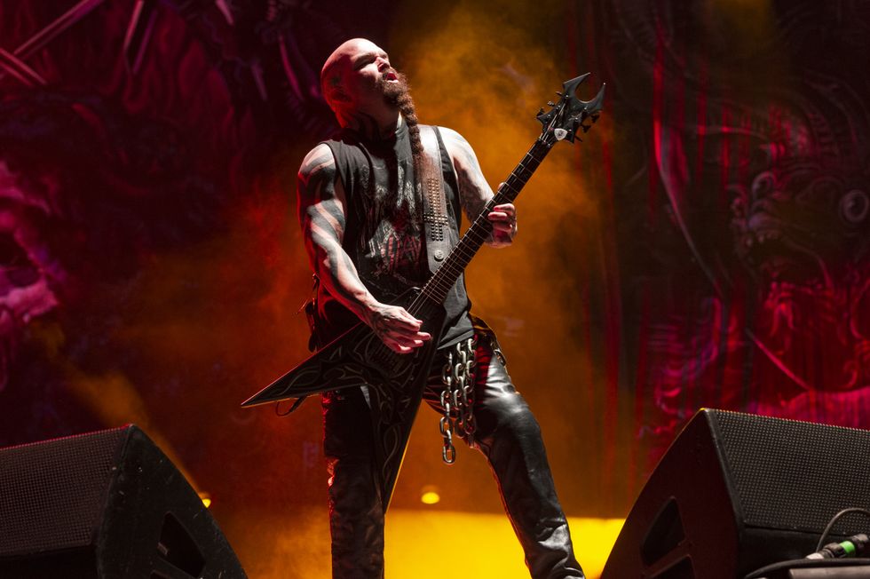 King has historically paired himself with equally capable guitarists: first Jeff Hanneman, then Gary Holt, and now Demmel. He says that he’s never had to adjust his playing style to any of them, but does note what differentiates Holt and Demmel from Hanneman, and how that affects his live performances. “I had to learn to not listen to Gary and Phil because they’re a lot more melodic than Jeff was,” he assesses. “And I don’t mean that in a detrimental way. It’s just that Jeff had his style. Gary is super melodic, and I think Phil’s even a bit more melodic.” Shifting his focus from listening to what the other guitarist is doing so he can pay attention only to what he’s playing has become King’s superpower when playing live.