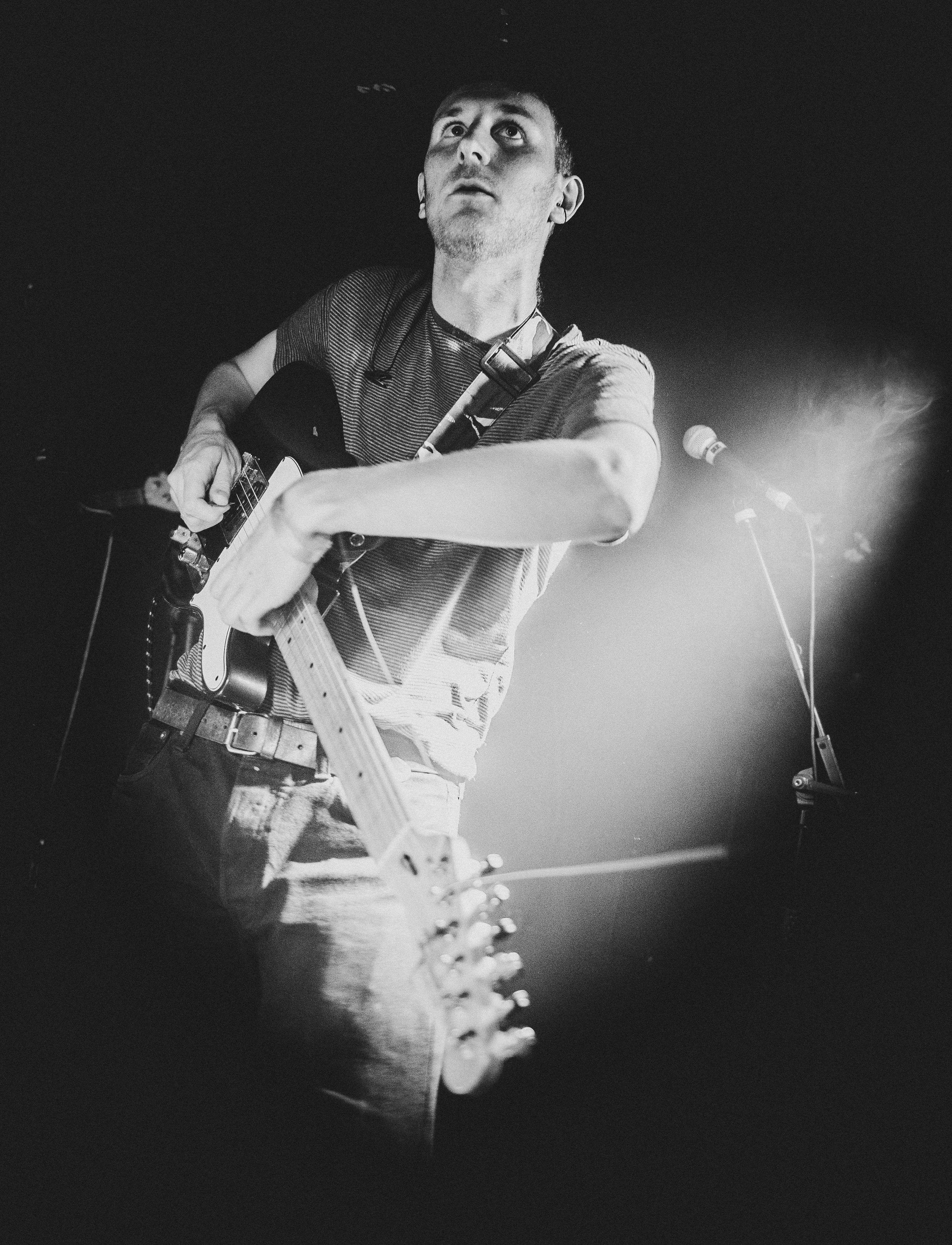 As a guitar band, Squid's approach to the instrument doesn't have much to do with the glory days of tight pants and arenas—or even '90s-era flannel and grunge. "There is a whole history you're engaging with when you touch the guitar," Pearson says. "And we're still interested in that history. We're interested in finding ways of making new stories. They say the electric guitar is so successful because it is that perfect marriage of technology and a gestural nature you get from acoustic instruments. You can go as far as you want in terms of electronic technology with it—right up to plugging it into a computer—but at the same time, you still have the gestural nature, that kind of visceral nature that you get when you see someone play it live. I studied West African music at university, and for a lot of communities, like in Mali and Niger, it is still such an important symbol—not just for music, but also resistance. It is still an interesting tool and it still has relevance, but it is important to keep thinking of ways to innovate and change people's perceptions of it, and I think we're trying to do that a bit."