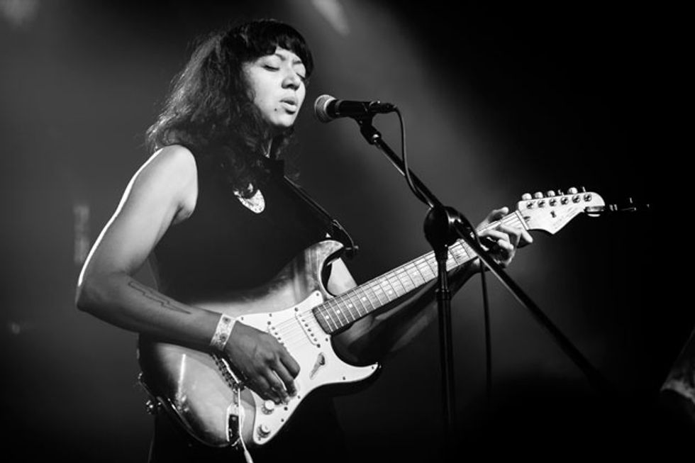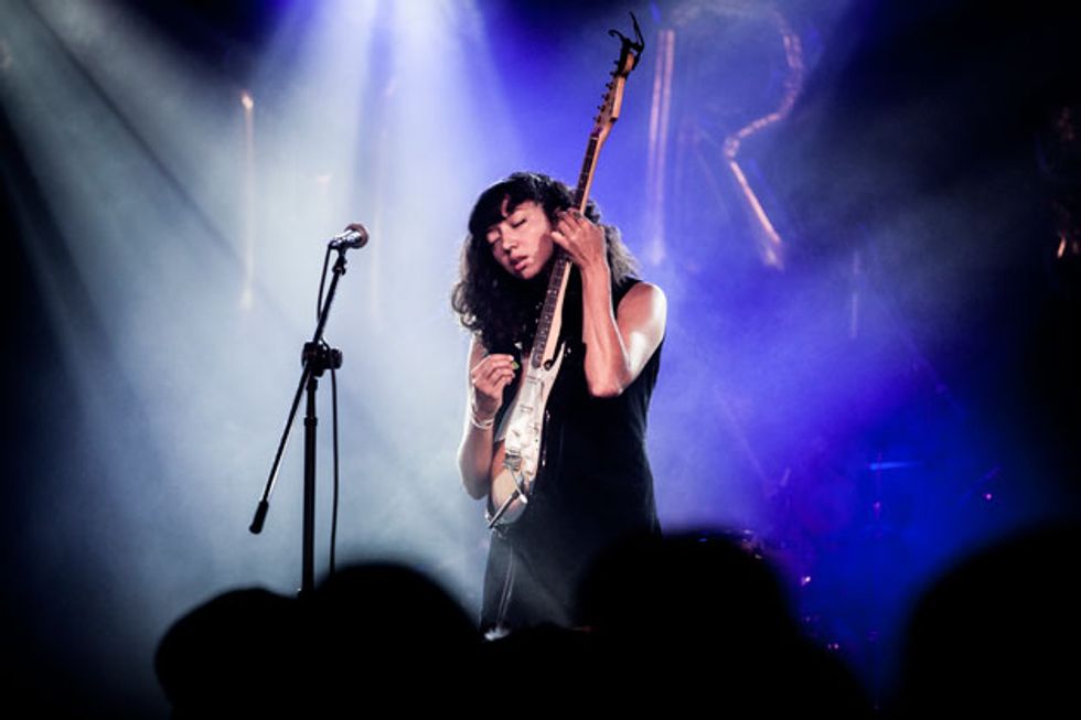 La Luz guitarists/frontwoman Shana Cleveland jams on her MIM Fender Stratocaster she bought at a small music shop in Seattle called the Trading Musician. "I’m not a gearhead by any means, so any time I need something, I tell the people working there the sound that I’m after and they’re cool with me doing some trial-and-error, so that’s how I’ve come