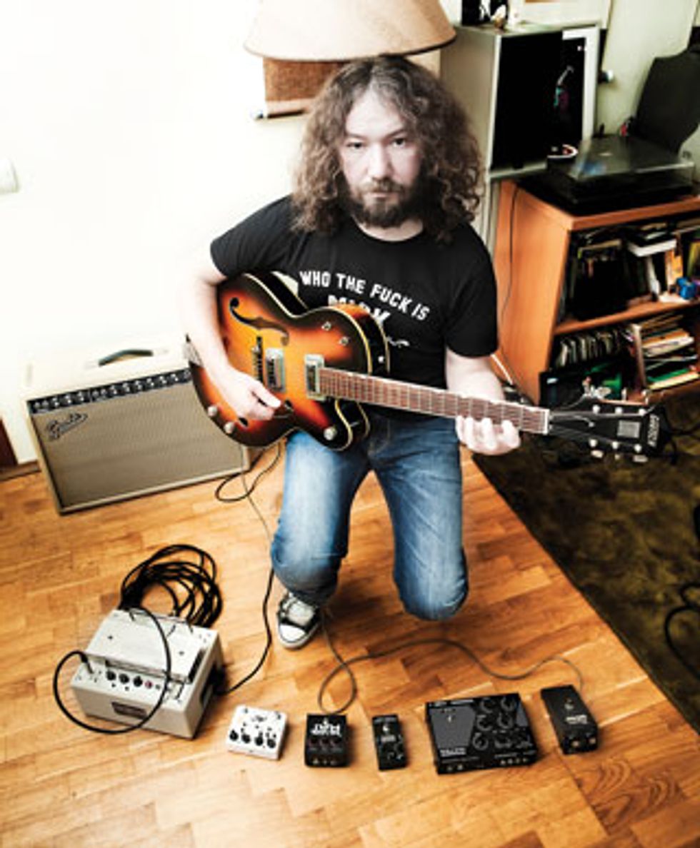 Lagutenko: I actually built my own first electric guitar myself. When I was 11 or 12, I took a neck from an acoustic guitar and went to this kids’ sailing club that I was enrolled in, and took this white plastic thing from an old sailboat and sawed a V shape out of it. Then I put the neck on it and bought an acoustic pickup to put on it. That was my first electric-guitar experience. My first real amp was probably a Roland JC-120. I’m originally from Vladivostok, and it was a port where you would have sailors on small cruise ships coming from all over the world. They would bring in mostly Japanese tourists, and every ship had a band. Those bands were a unique source of equipment, because the players would usually buy stuff in Japan and eventually sell it on shore. Now I like Gibson amps.