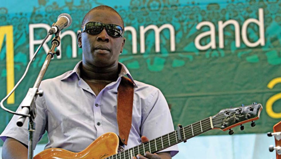 Bona fide jazz-guitar legend John Scofield—who joined Vieux on “Gido”—came to the project through Krasno. Sco wasn’t familiar with the younger Touré, but he was already interested in music from the region. “I have been aware of North African music and its similarity to blues. I read some treatises from academic guys saying that a lot of blues sounds come from Mali. When I heard his father, I just loved it,” says Scofield. When he arrived at the session, the track was mostly complete. “It was very natural for me. On my solo, I used a 1974 Gibson ES-335 with a Bigsby going into a DigiTech Whammy pedal and a Bad Cat amp. I did a faux-Eastern sort of thing that is very much related to my blues approach to guitar. It felt right just to play. In other words, I didn’t even have to know the tune. The music felt very much at home for me.”