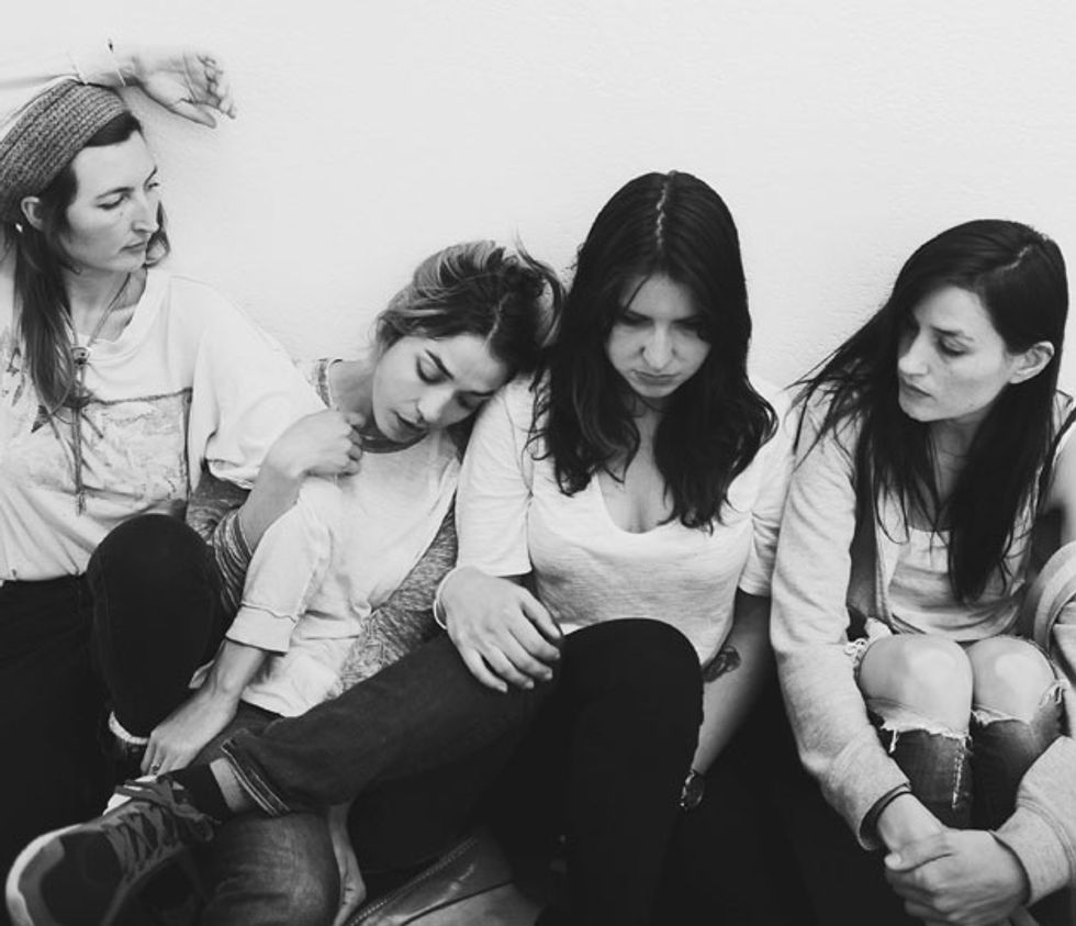 “My mom was always listening to her old records,” Warpaint’s Emily Kokal says about the music she heard growing up. “She was really into Bonnie Raitt, Joni Mitchell, Neil Young, Crosby, Stills, Nash & Young, Leon Russell, and all those people—Jackson Browne—so I was around a lot of acoustic guitar music.” Guitar-based classic rock and early new wave were in the air when Kokal and Warpaint co-guitarist, Theresa Wayman, were coming of age as budding musicians in Eugene, Oregon. “Bob Dylan, Talking Heads, Al Green, Cyndi Lauper—those were all things I was listening to when I was growing up,” Wayman adds. “My friends recently made a playlist from The Harder They Come soundtrack, and I thought, ‘I listened to that album so much when I was younger.’” But it was electronic music, and specifically ’90s-era trip hop—a genre reliant on samples and drum machines—that inspired them to become musicians.